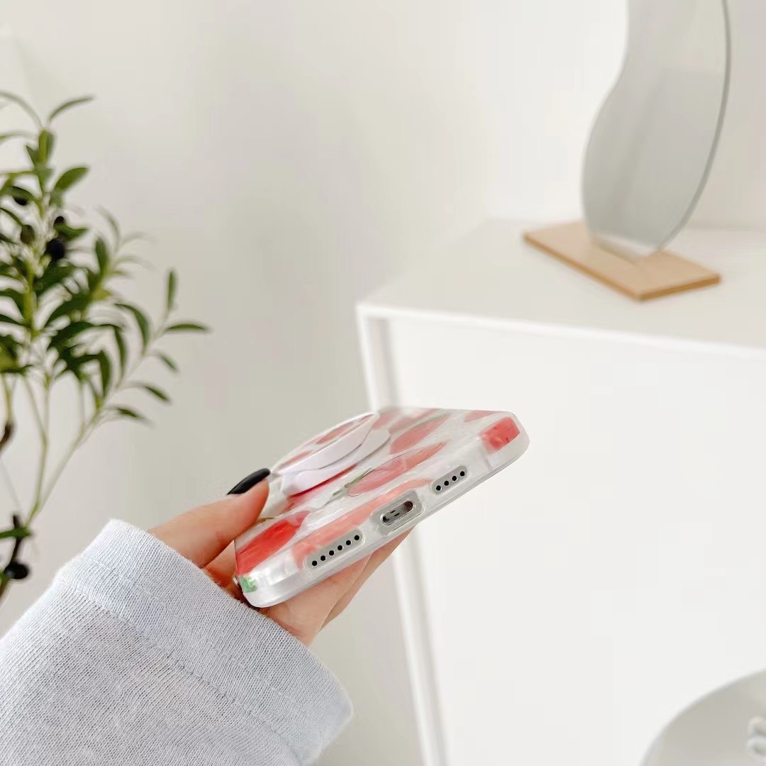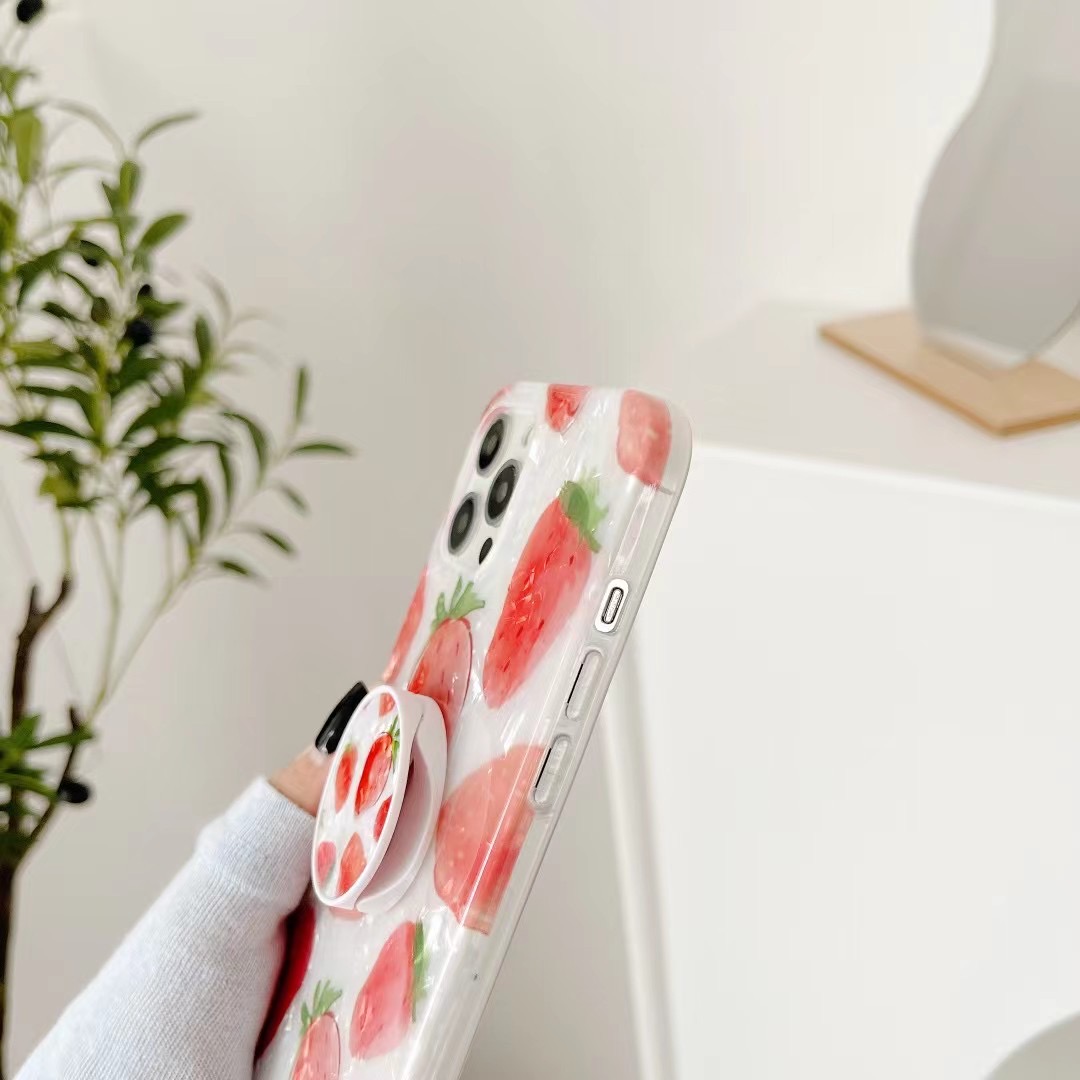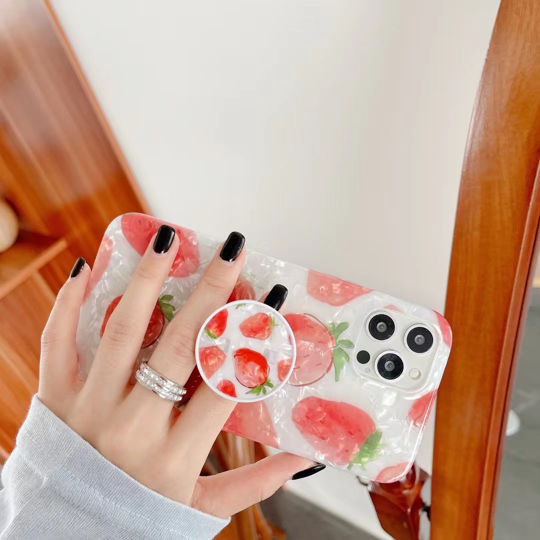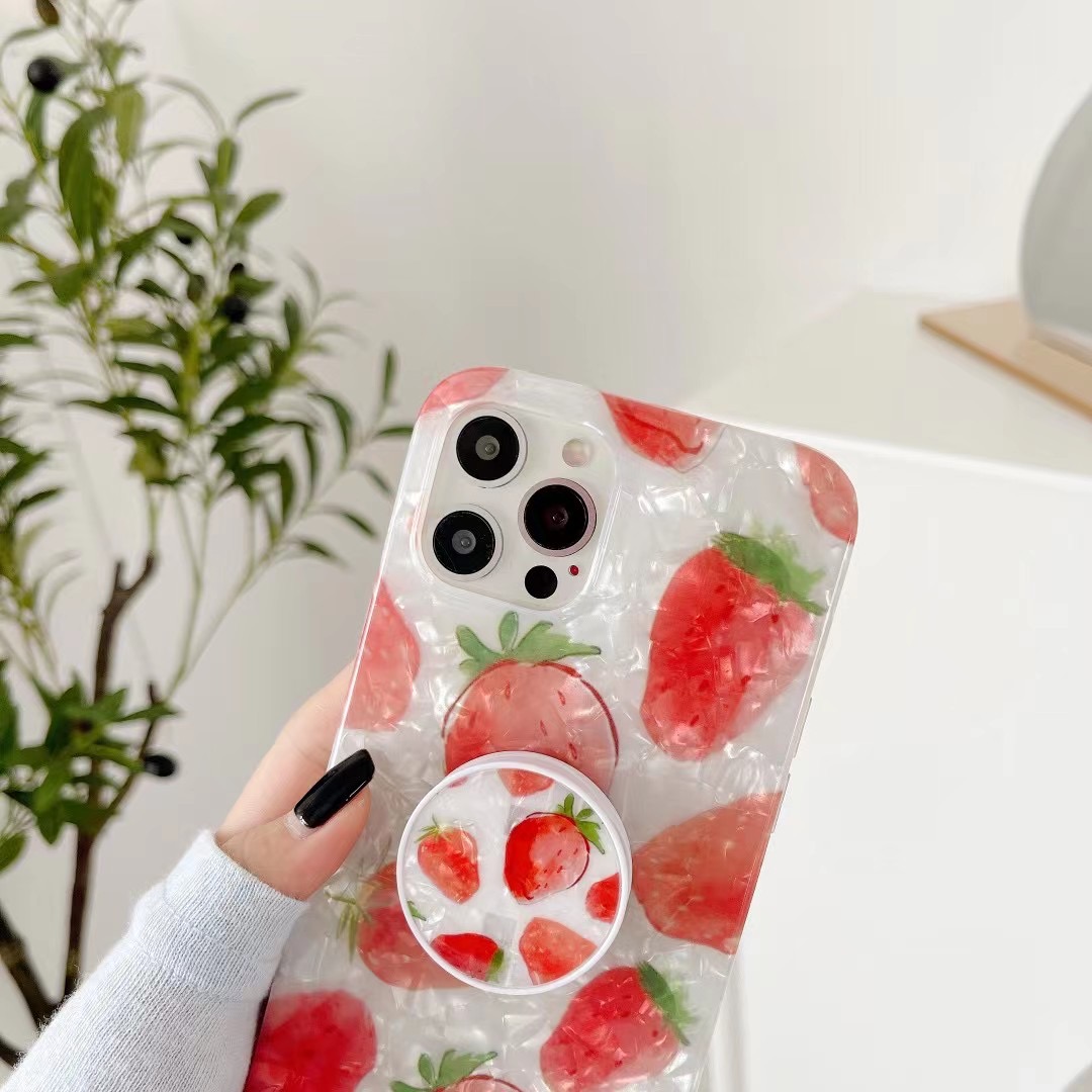 可愛いイチゴ模様がパッと目を引くスマホケース(iPhoneケース)。