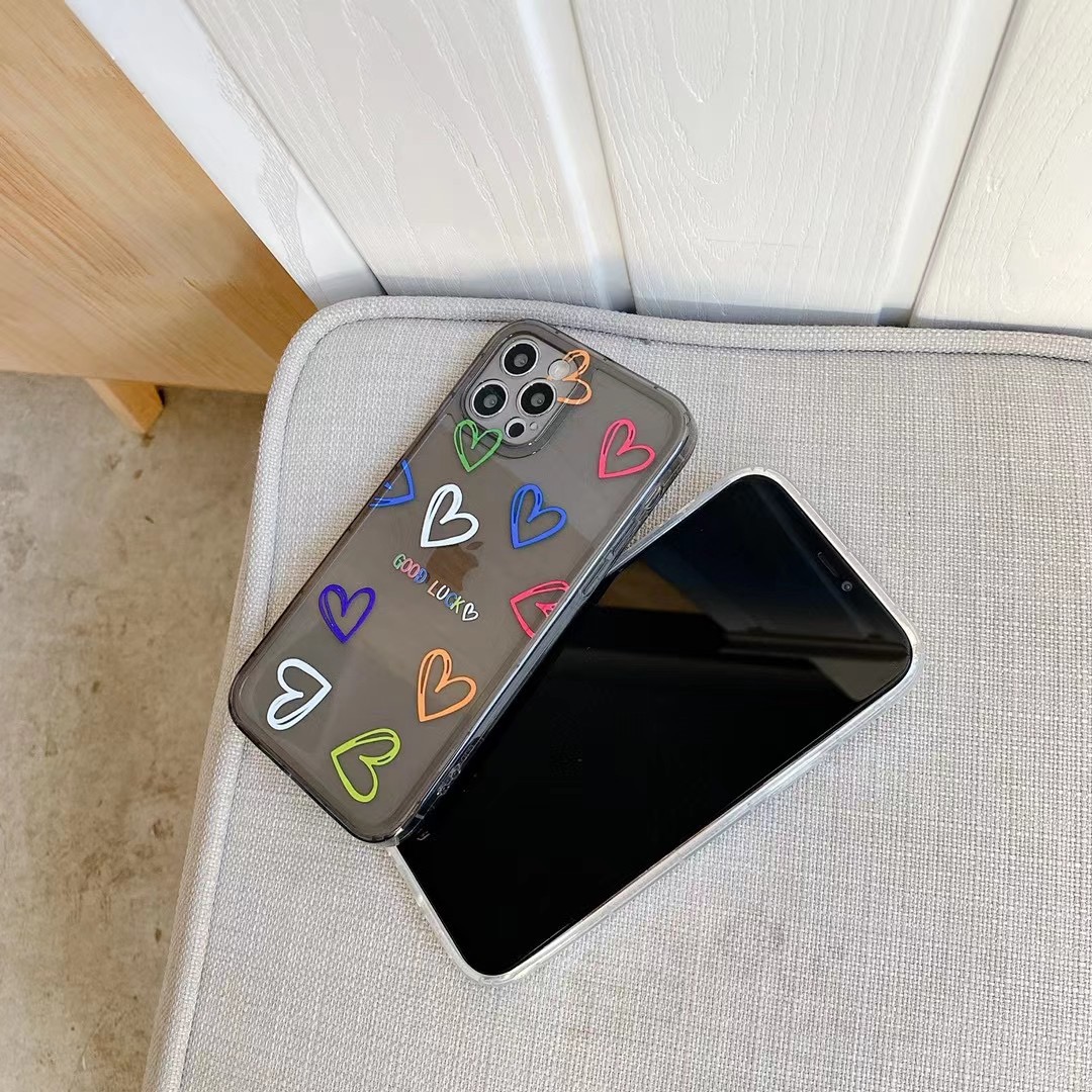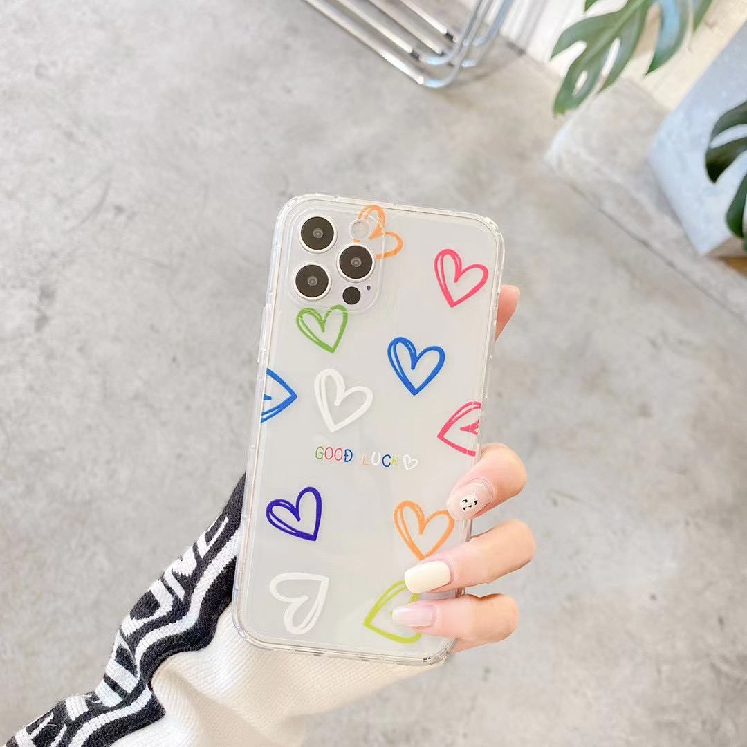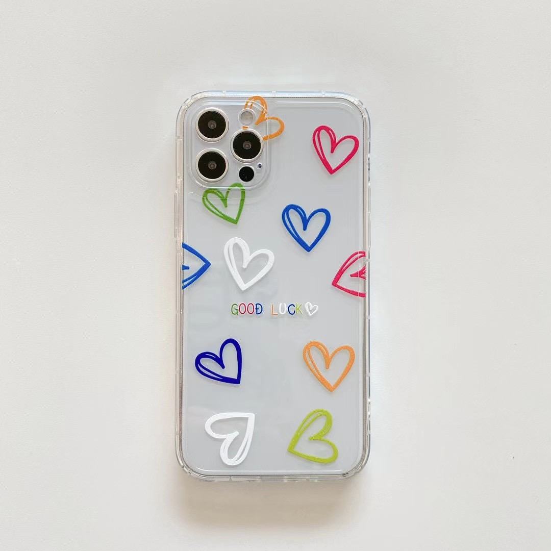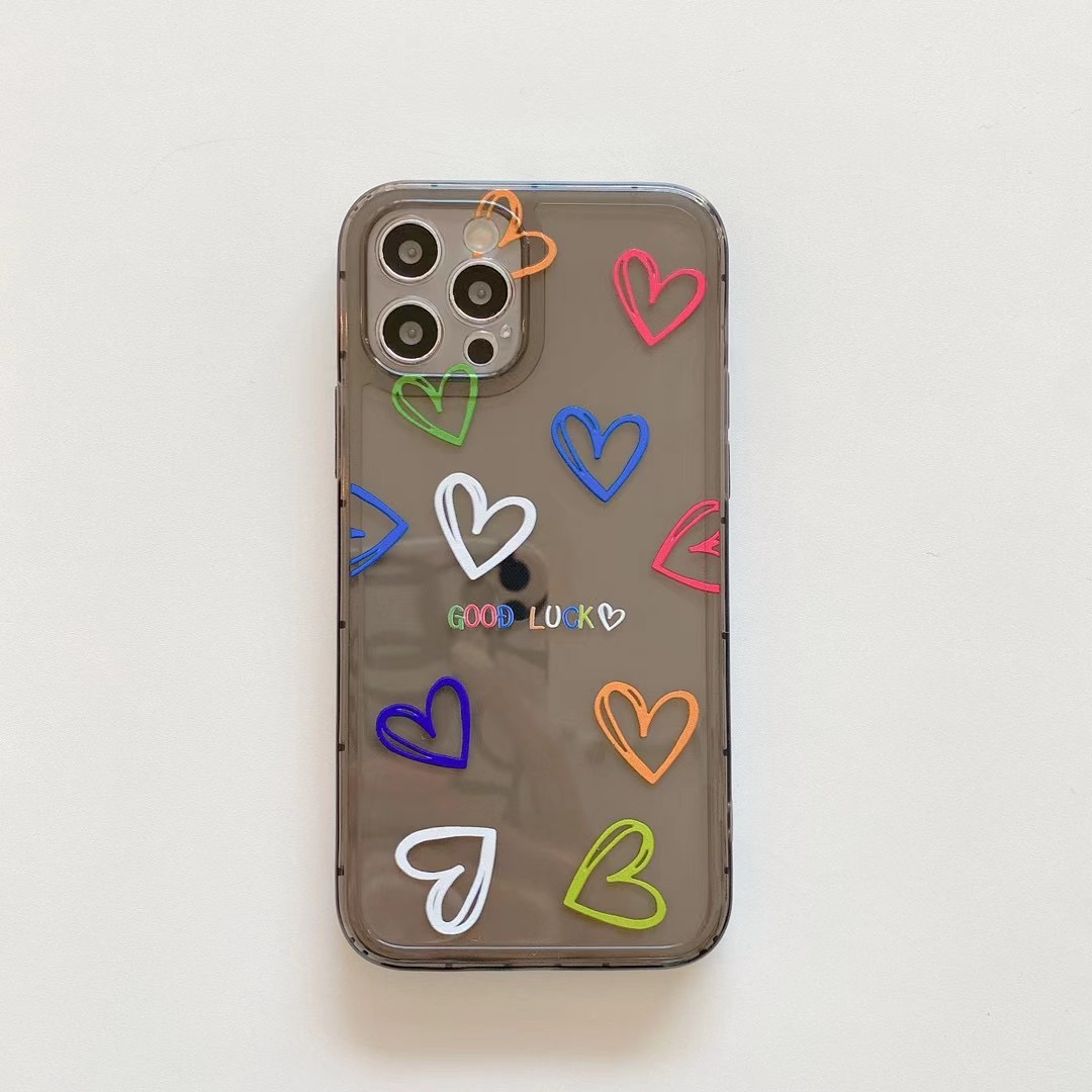 クリアベースのハート模様が爽やかなスマホケース(iPhoneケース)。